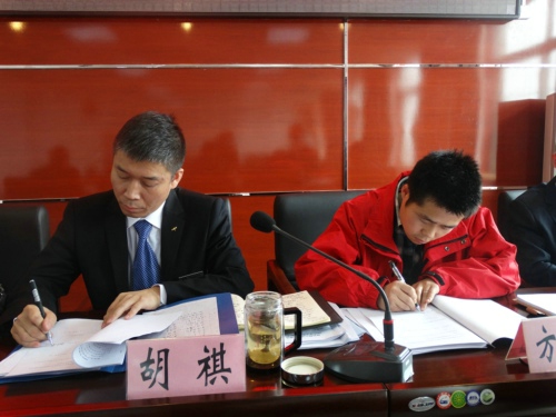 胡總代表公司同各部門(中心)簽訂了《2015年經(jīng)營指標(biāo)責(zé)任書》、《安全生產(chǎn)責(zé)任書》。