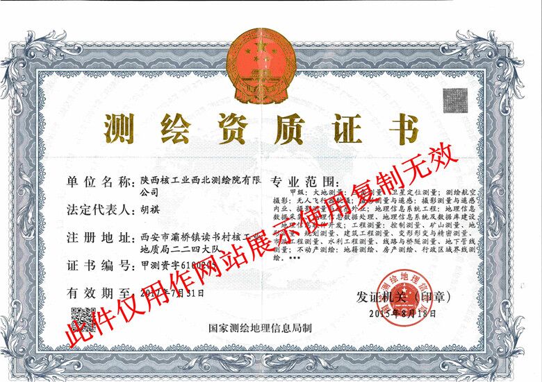 在公司領(lǐng)導(dǎo)的大力支持下,在陜核西北測繪院全體職工的共同努力下,測繪院資質(zhì)由乙級成功升為甲級。