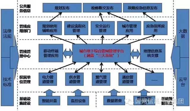 針對當前我國地下管線數(shù)據(jù)標準不統(tǒng)一、管線埋設現(xiàn)狀不明、缺乏信息化手段支撐、管理方式粗放等缺陷,國網(wǎng)信通產(chǎn)業(yè)集團提出地下管線“一大工程,三大系統(tǒng),四大體系”的整體解決方案。方案應用大數(shù)據(jù)、云計算、物聯(lián)網(wǎng)、信息通信、地理信息、三維GIS、移動GIS等新興技術(shù),依托現(xiàn)代Internet網(wǎng)絡及數(shù)據(jù)管理技術(shù),以基于地圖可視化的方式建設集資源管理、運行維護、在線監(jiān)測、決策分析等在內(nèi)的地下管線資源管理一體化解決方案,可實現(xiàn)管線資源的全面統(tǒng)籌,實現(xiàn)對地下管線精細粒度的信息維護,全面支撐精細化管理需要,為管理決策提供可靠支持。