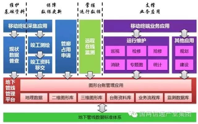 國網(wǎng)信通產(chǎn)業(yè)集團具有對地下管線從零基礎到全面深化應用的全套產(chǎn)品體系,主要包括地下管線數(shù)據(jù)采集服務與數(shù)據(jù)工廠、地下管線數(shù)據(jù)采集移動終端應用、地下管線基礎數(shù)據(jù)管理平臺、地下管線在線監(jiān)測管理系統(tǒng)與基礎設施提升、地下管線業(yè)務支撐系統(tǒng)與移動作業(yè)平臺,為用戶提供完整而全面的地下管線信息化管理輔助服務。