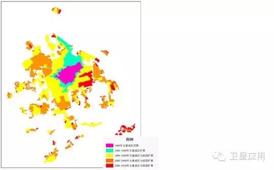北京1978-2010年建成區(qū)面積由161km²增至1734km²,城市擴展了近11倍。北京建成區(qū)如圖1所示。