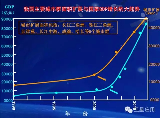 圖3 我國主要城市群面積擴展與國家GDP增長的大趨勢