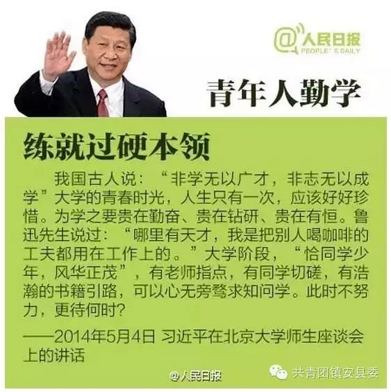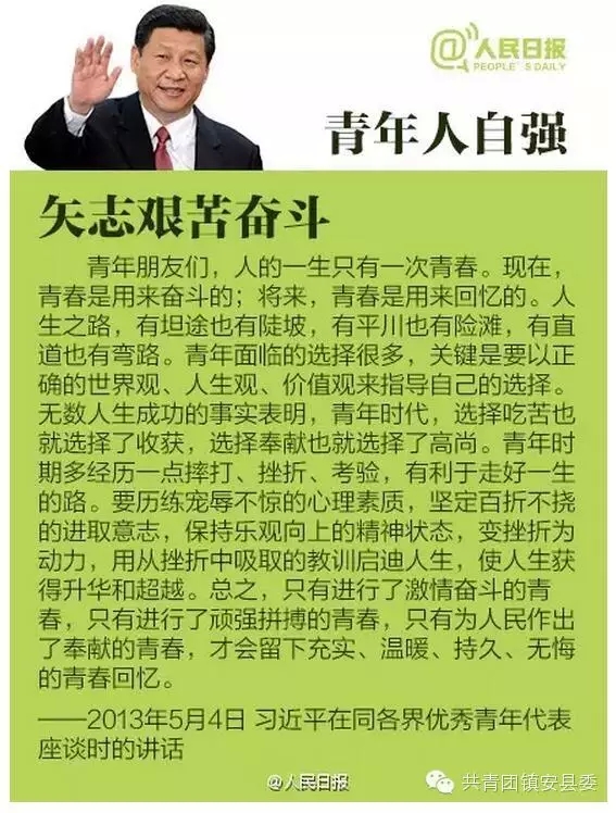 學“習”時間 ①青年朋友們,人的一生只有一次青春。青年時期多經歷一點摔打、挫折、考驗,有利于走好一生的路。 ?、谏顝牟痪祛櫼蜓嘏f、滿足現(xiàn)狀者,從不等待不思進取、坐享其成者,而是將更多機遇留給善于和勇于創(chuàng)新的人們。 ?、矍嗄晔且L氣之先的社會力量。