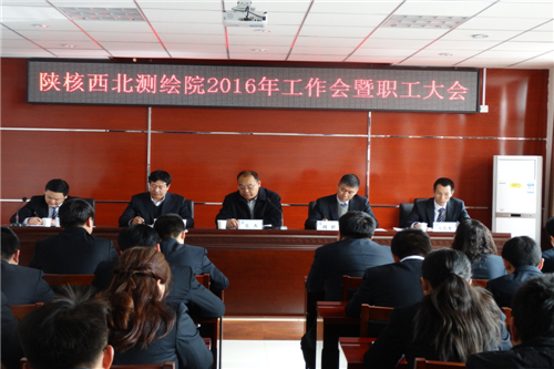 2月19日下午,陜核西北測(cè)繪院召開(kāi)了2016年工作會(huì)暨職工大會(huì),會(huì)議由測(cè)繪院副總經(jīng)理王偉主持。測(cè)繪院全體干部職工參加了會(huì)議,二二四大隊(duì)有限公司工會(huì)主席、紀(jì)委書記吳杰,副總經(jīng)理鄭道斌以及各職能部門負(fù)責(zé)人應(yīng)邀參會(huì)。