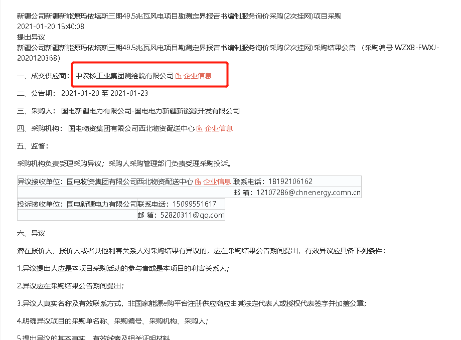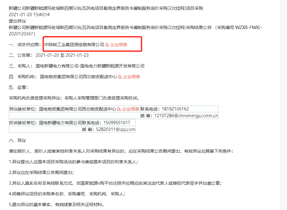 1月20日,新疆分公司傳來喜訊,在這2021年的開篇時間節(jié)點上,測繪院連續(xù)中標(biāo)“新疆公司新疆新能源瑪依塔斯三期49.5兆瓦風(fēng)電項目勘測定界報告書編制服務(wù)詢價采購項目”、“新疆公司新疆新能源瑪依塔斯四期50兆瓦風(fēng)電項目勘測定界報告書編制服務(wù)詢價采購項目”。
